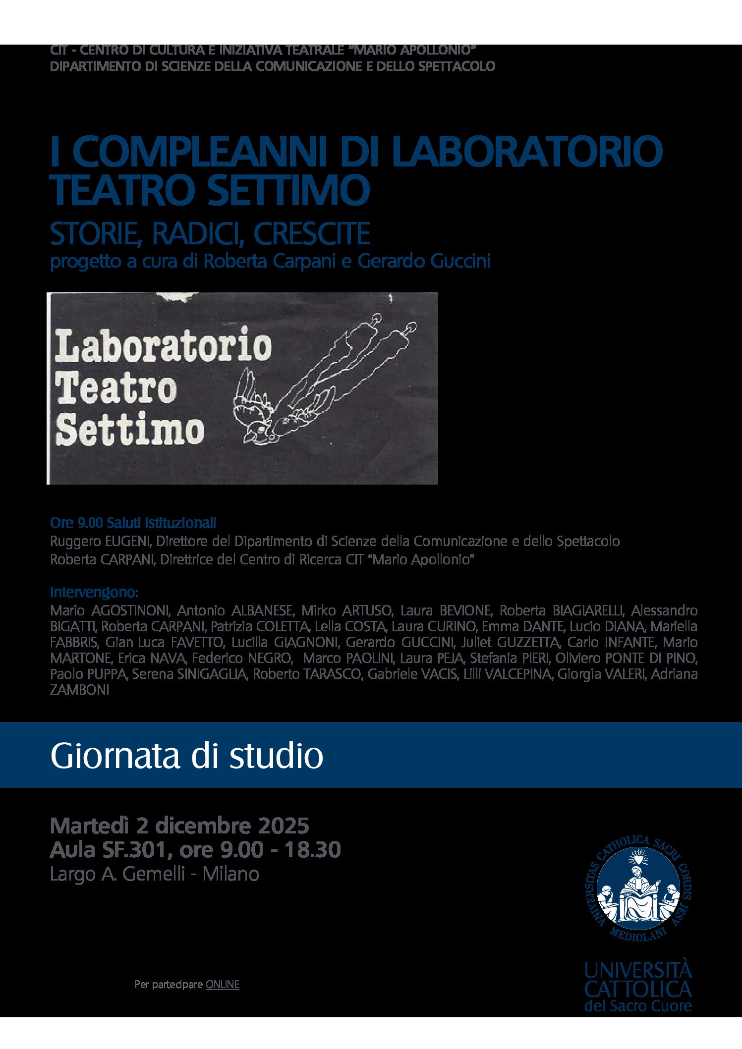 Un incontro promosso per il prossimo 11 dicembre pomeriggio dal PRIN 2022 “Theatre Festivals between Local and Global”, con relazioni – in lingua inglese – di