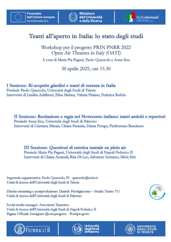 Si segnala il workshop dal titolo Teatri all’aperto in Italia: lo stato degli studi, che si terrà il prossimo 30 aprile 2025 nell’ambito del PRIN-PNRR 2022