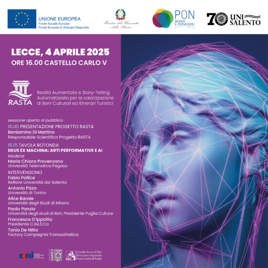 La tavola rotonda Deus ex Machina. Arti Performative e AI si terrà nel pomeriggio del 4 aprile, alle 16.00, presso il Castello Carlo V di Lecce, a conclusione del