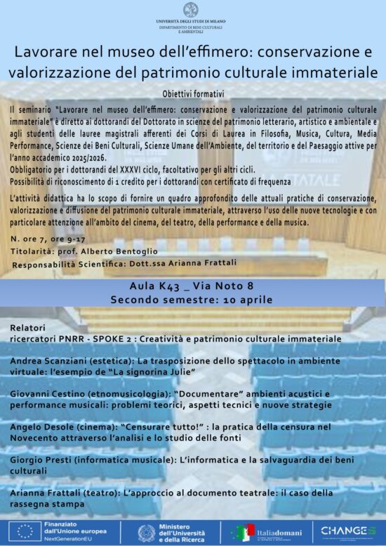 Seminario dottorale “Lavorare nel museo dell’effimero: conservazione e valorizzazione del patrimonio culturale immateriale” – Milano, 10 aprile 2025