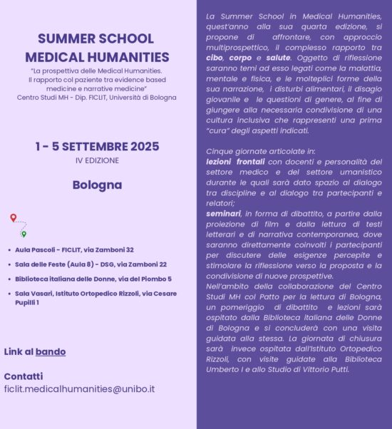 La quarta edizione della Summer School in Medical Humanities avrà come tema centrale quello del cibo, corpo, salute e vedrà il coinvolgimento di studiosi di differenti aree