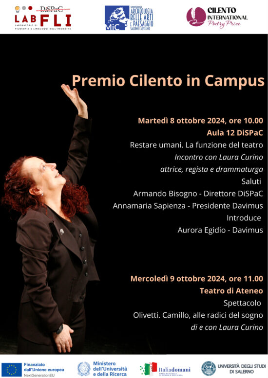 In occasione del conferimento del Premio Internazionale Cilento Poesia per la sezione Teatro, la cui cerimonia di premiazione si terrà il 10 ottobre alle 19.30 presso la