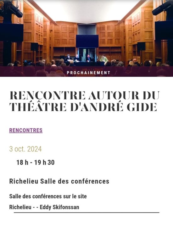 “Rencontre autour du théâtre d’André Gide” Parigi, 3 ottobre 2024