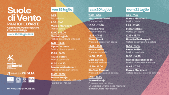 Un’occasione di formazione che si terrà a Lecce, dal 19 al 21 luglio, all’interno del Festival del Teatro dei Luoghi di Koreja, durante il quale verrà presentato l’ultimo