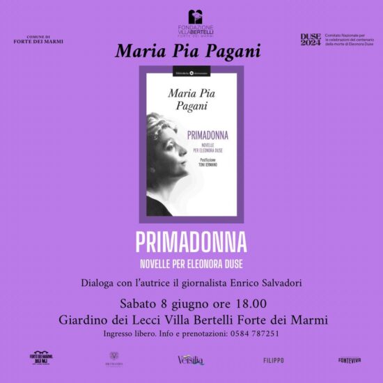 L’8 giugno presso il Giardino dei Lecci di Villa Bertelli (a Forte dei Marmi) verrà presentato il volume di Maria Pia Pagani Primadonna. Novelle per Eleonora