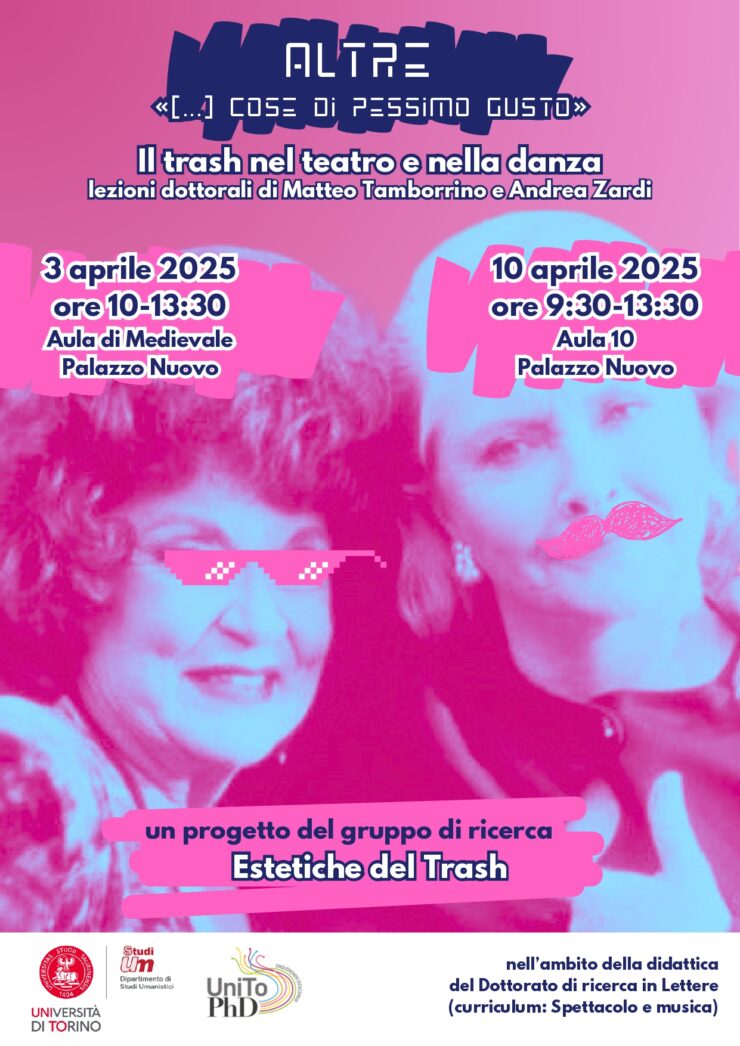 Il ciclo di lezioni dottorali dal titolo ‘Altre «[…] cose di pessimo gusto». Il trash nel teatro e nella danza’ è parte della programmazione didattica del Dottorato in Lettere – Curriculum in Spettacolo e Musica dell’Università di Torino.