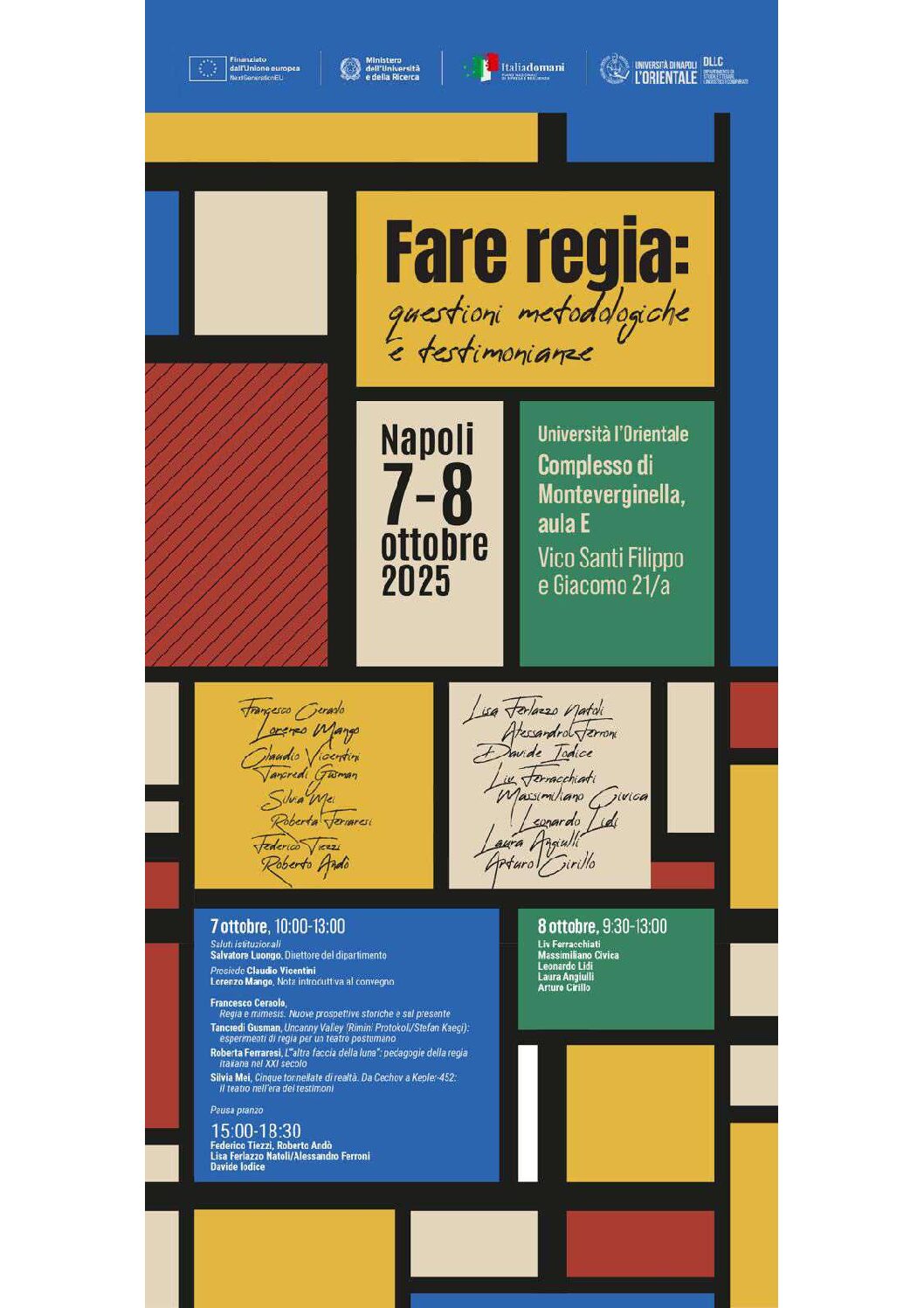 Il 7 e l’8 ottobre presso l’Università L’Orientale di Napoli si terrà il convegno dal titolo “Fare regia: questioni metodologiche e testimonianze”, parte del progetto PRIN “Una regia in transizione”.