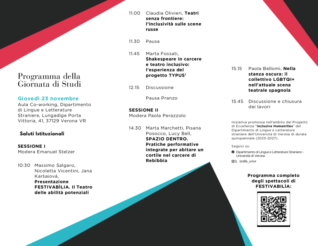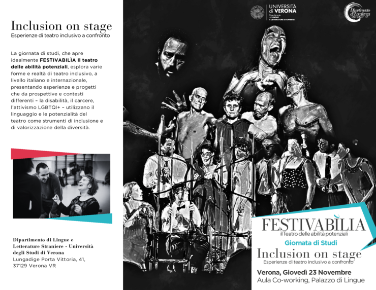 Iniziative promosse dai SociNovembre 21, 2023Novembre 23, 2023 Giornata di studi “Inclusion on stage” – Verona, 23 novembre 2023 DI Matteo Tamborrino Continua a leggere Articolo precedentePresentazioni di libri “Studiare il teatro e la danza” – Bologna, fino al 5 dicembre 2023Prossimo articoloARIA festival di teatro dell’Università dell’Aquila – L’Aquila, 24 novembre-11 dicembre 2023 Programma completo