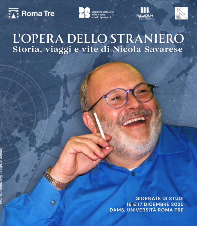 Il 16 e 17 dicembre si terranno al DAMS di Roma Tre due giornate di studi dal titolo L’opera dello straniero. Storia, viaggi e vite di Nicola Savarese, a cura dei docenti di teatro e danza del DAMS, in collaborazione con la Fondazione Teatro Palladium e con il LIPSER – Laboratorio interdisciplinare di pratiche della scena e della ricerca.