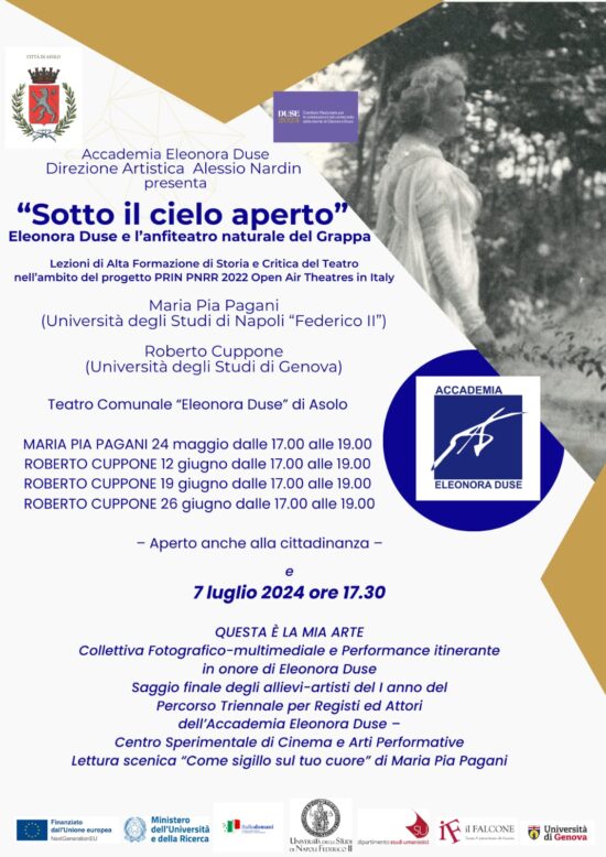 Nuovo ciclo di lezioni per l’Accademia Duse di Asolo di alta formazione in storia e critica del teatro, dal titolo ‘Sotto il cielo aperto’: Eleonora Duse