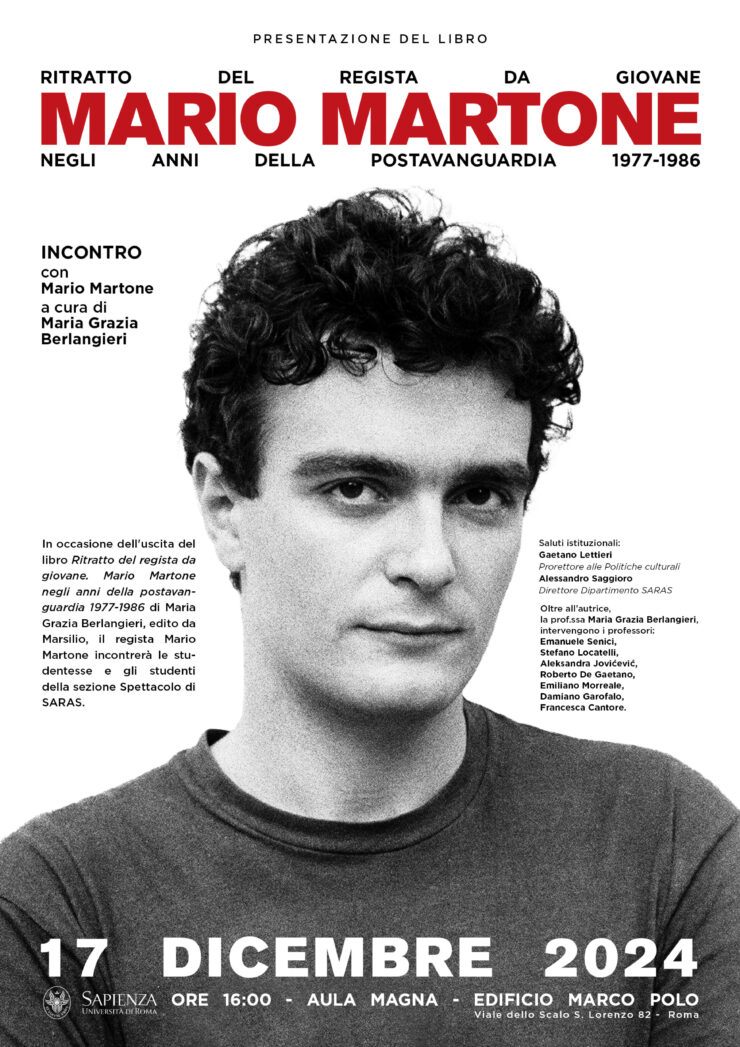 Dopo i Saluti istituzionali di Gaetano Lettieri, Prorettore alle Politiche culturali e Alessandro Saggioro, Direttore Dipartimento SARAS, Maria Grazia Berlangieri e Mario Martone presentano Ritratto del regista da giovane.