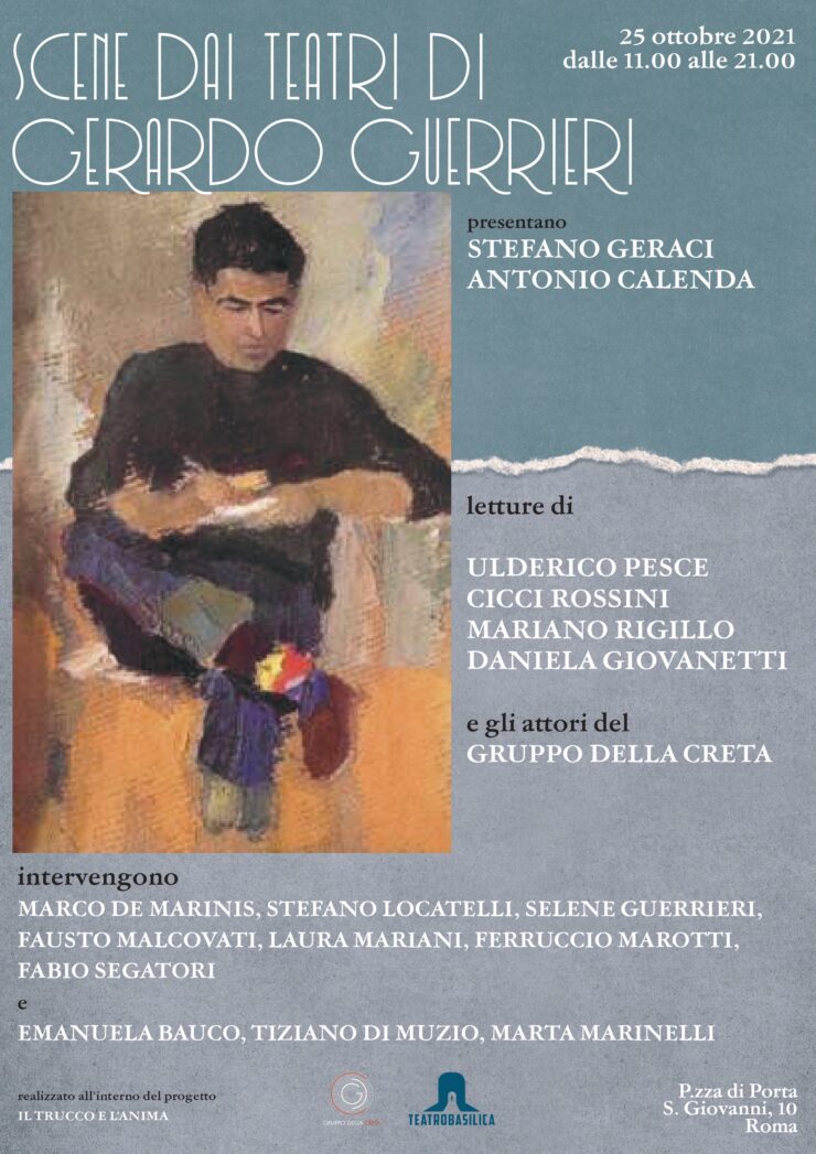 Con loro, a perlustrare le scene, ci saranno storici del teatro e testimoni (Marco De Marinis, Stefano Locatelli, Selene Guerrieri, Fausto Malcovati, Laura Mariani, Ferruccio Marotti), giovani studiosi (Emanuela Bauco,Tiziano Di Muzio, Marta Marinelli) attori complici o vicini alle avventure di Guerrieri (Mariano Rigillo, Cicci Rossini, Ulderico Pesce e Daniela Giovanetti), il regista che ha dedicato a Guerrieri un importante documentario (Fabio Segatori) e gli attori (Gruppo della Creta) che guidati da Alessandro Di Murro daranno voce e vita teatrale alle pagine di Guerrieri scelte per ogni scena.